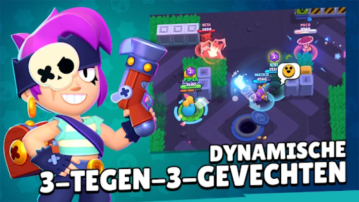 Duik in de razendsnelle, chaotische actie van Brawl Stars, een unieke multiplayer arena waar strategisch knokken centraal staat. Stel je ultieme team samen of ga solo de strijd aan met een keur aan iconische knokkers. Elk personage beschikt over verwoestende supervaardigheden, slimme gadgets en strategische sterrenkrachten die de uitkomst van elk gevecht kunnen bepalen. Personaliseer je favorieten met een scala aan opvallende skins en bewijs je vaardigheid in diverse, dynamische gevechtsomgevingen binnen het Brawl Stars-universum.