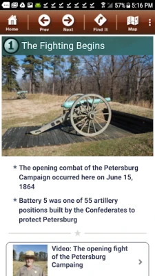 Stap terug in de tijd en ontdek de rijke geschiedenis direct op de plaats waar deze zich heeft afgespeeld. De Petersburg Battle App transformeert uw mobiele apparaat in een persoonlijke gids, die u een ongeëvenaarde blik biedt op cruciale momenten uit het verleden. Door simpelweg de virtuele wegwijzers te volgen, ontsluit u een wereld aan informatie die nauw verbonden is met uw actuele locatie. Ervaar de geschiedenis niet alleen, maar sta er middenin.