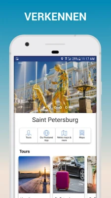 Ontdek de stad in uw eigen tempo met dagelijkse reisplannen die naadloos aansluiten bij uw interesses. Sint-Petersburg Reisgids presenteert een scala aan opties, van gedetailleerde wandeltochten die u langs historische straten leiden tot uitgebreide stadsrondleidingen en flexibele Hop-On Hop-Off tours. Bovendien navigeert u moeiteloos door Sint-Petersburg met geïntegreerde kaarten voor zowel straten als openbaar vervoer, inclusief gedetailleerde routes voor de ondergrondse, metro en treinen. Uw weg vinden door de bruisende metropool is nog nooit zo eenvoudig geweest.