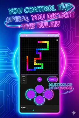 Welkom bij Neon Snake, waar het iconische slangenspel een spectaculaire metamorfose ondergaat. Duik in een wereld van oogverblindende neonkleuren en een meeslepende retro-futuristische esthetiek die de klassieker met een frisse, moderne twist tot leven wekt. Deze heruitvinding belooft niet alleen de nostalgische charme van weleer, maar fascineert met betoverende visuele effecten die elke beweging van de groeiende slang transformeren in een hypnotiserende lichtshow. Bereid je voor op een visueel feest dat het bekende concept naar ongekende hoogten tilt.
