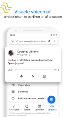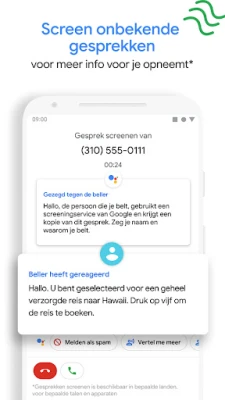 Ontdek een slimmere manier van communiceren dankzij innovatieve gespreksscreening. De app Telefoon filtert onbekende bellers discreet voor u, waardoor gedetecteerde spammers geruisloos worden geweerd zonder uw dag te verstoren. U krijgt de kans om meer te weten te komen over onbekende nummers, zodat u weloverwogen beslissingen neemt. Mis nooit meer een belangrijk bericht met visuele voicemail. U kunt voicemailberichten in elke gewenste volgorde beluisteren, transcripties lezen, en berichten moeiteloos beheren — allemaal direct vanuit de intuïtieve interface van Telefoon, zonder tijdrovende voicemailmenu's.